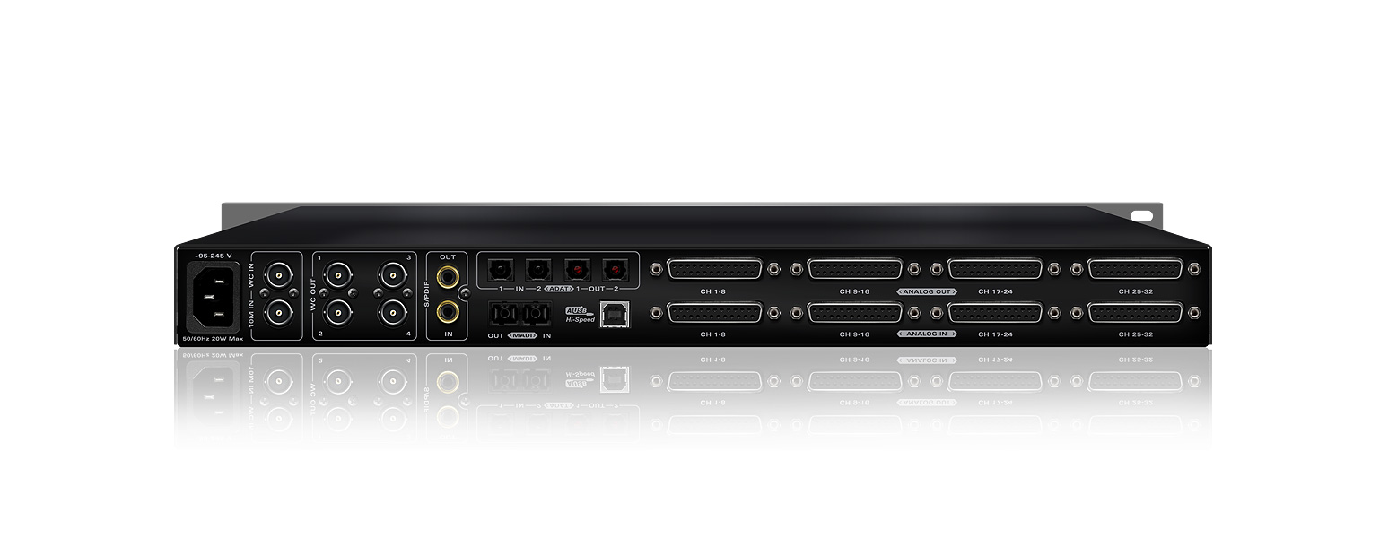 - 32 канала ввода-вывода на разъемах MADI (оптика)