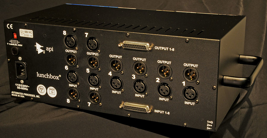 По запросуAPI 500-6B Lunchbox® - переносное шасси на 6 модулей 500 серии (API, Chandler Limited…) со встроенным блоком питания. Блок на 6 стандартных модулей API 5.25” х 1.5”. API 500-6B имеет блок питания с переключателем напряжения и съемный шнур питания. Входы и выходы выполнены на разъемах XLR. API 500-6B имеет фантомное питание 48Вольт, поэтому при подключении, например, микрофонного предусилителя API 512c, фантомное питание будет подаваться на предусилитель непосредственно по 15-пиновому разъему.