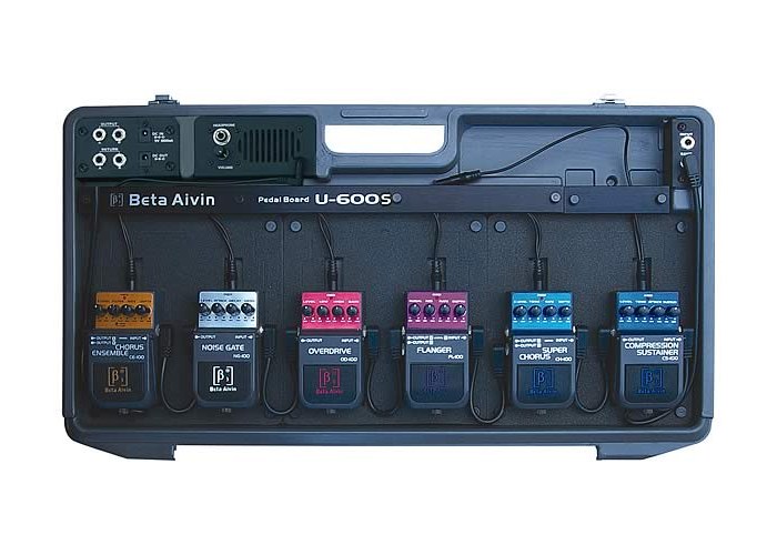 По запросуBeta Aivin U-600S - панель распределения сетевого питания для гитарных / басовых педалей-эффектов, исполнена в виде закрывающегося чемоданчика.
