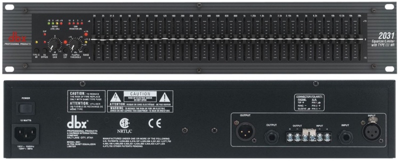 Арт.: Я0010418DBX 2031 - 1-канальный 1/3 октавный 31 полосный графический эквалайзер с лимитером, система шумоподавления Type III™ на основе динамического фильтра, отключаемый обрезной НЧ-фильтр, режим обхода и изменяемый диапазон регулировок в каждой полосе (±6 дБ/ ±15 дБ), симметричные входы и выходы