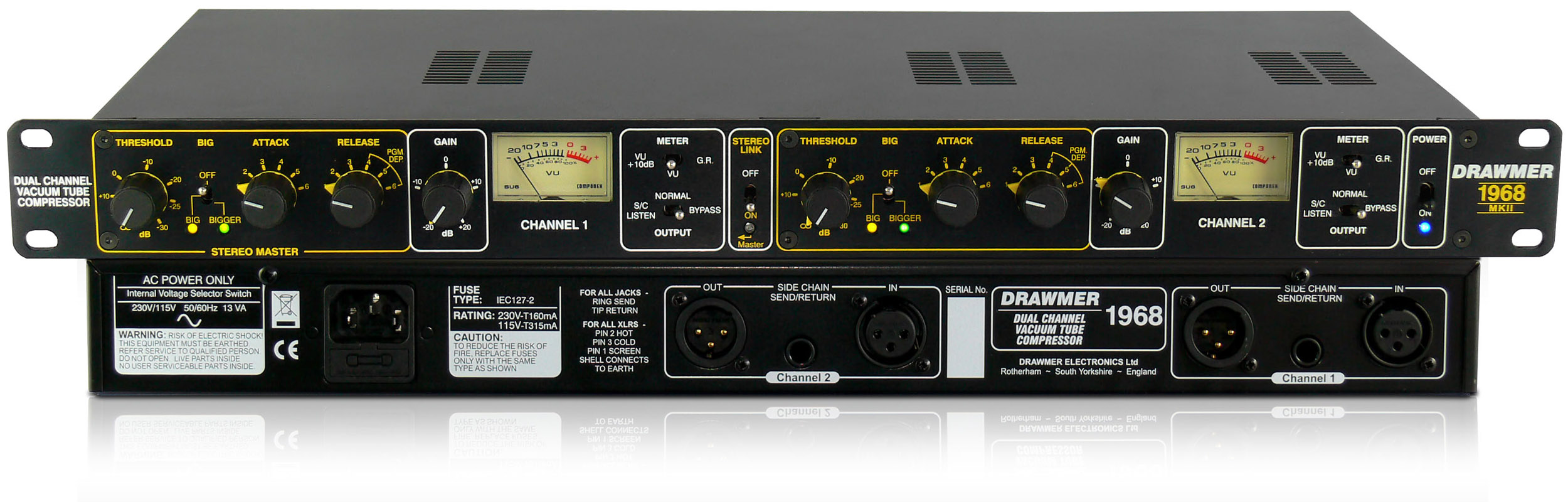 Drawmer 1968 MkII также имеет боковую цепь (Side Chain), позволяющую подключить внешний эквалайзер для подчеркивания вокала или де-эссинга.