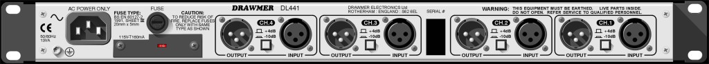 В модели Drawmer DL441 EX, занимающей в рэке объем 1U, объединены четыре канала автоматического компрессора DL221 и секция регулировки максимального уровня. Таким образом, Drawmer DL441 EX обеспечивает полноценное управление динамическими характеристиками сигнала с минимальными временными затратами на предварительную настройку.
