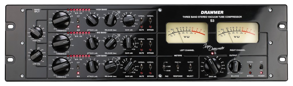 Арт.: Я0002315Drawmer S3 - Трёхполосный ламповый оптический компрессор. Аппарат не содержит полупроводниковых элементов в звуковом тракте. В одном корпусе установлены три ламповых компрессора. Звуковой тракт S3 содержит высококачественные входные и выходные трансформаторы, тщательно отобранные пассивные компоненты и десять ламп (8xECC83 и 2x12BH7), включенных по схемотехнике класса А.