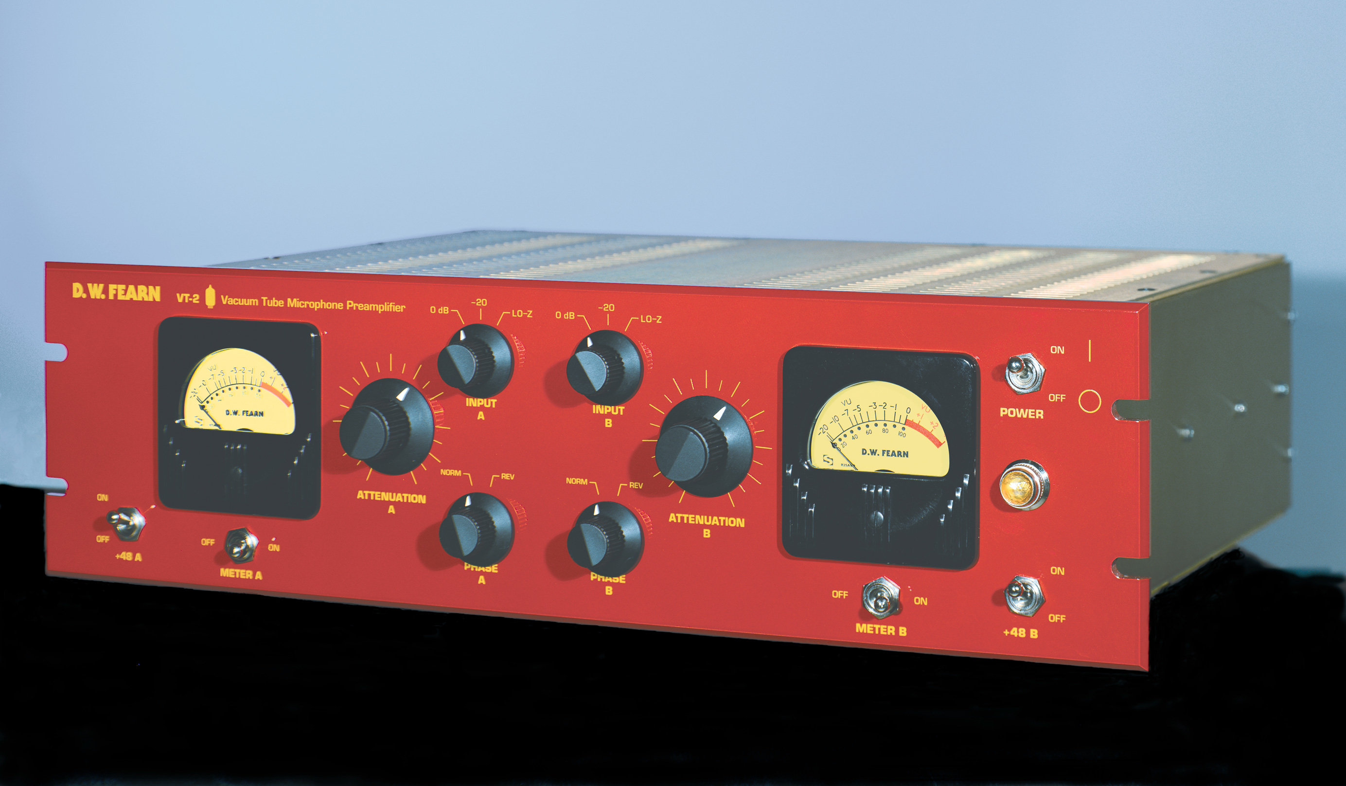 Арт.: Я0012083Ламповый микрофонный усилитель, 2-канальный. Фантомное питание +48 Вольт, переключатель фазы, переключатель -20 дБ, трансформаторы Jensen, UV-метры, навесной монтаж.
