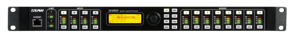 Процессор UX8800 обладает полным набором современных средств цифровой обработки сигнала. Дополнительные возможности и функции выделяют UX8800 как высококачественный процессор для больших систем с разнообразием выходных каналов и для обработки сигналов специально для акустических систем EAW.