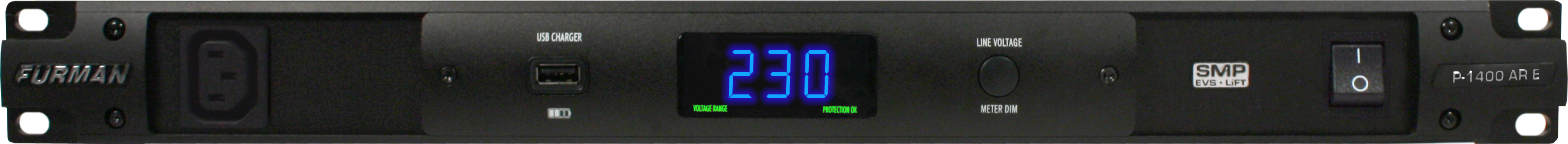Furman P-1400 AR E - Стабилизатор напряжения. Диапазон напряжения питания: 174 - 264 В Усовершенствованное кондиционирование и фильтрация питания с SMP, LiFT и EVS. Ток 6A. Стабилизация напряжения RMS позволяет подавать стабильное питание переменного тока напряжением 230 В. На большой светодиодный вольтметр/амперметр выводится значение подаваемого напряжения и выходной ток. Разъем USB на передней панели позволяет заряжать большинство мультимедийных устройств
