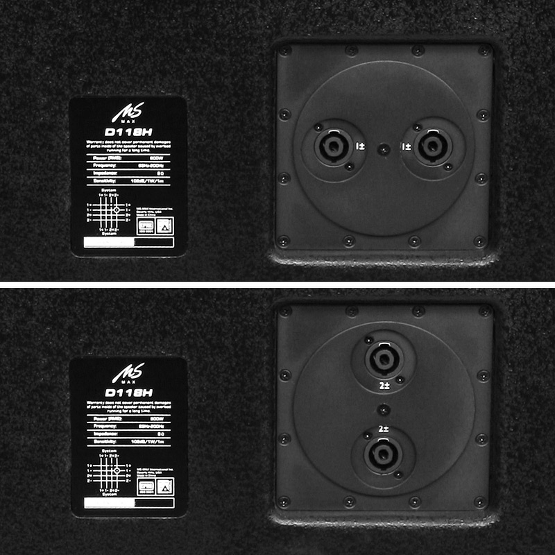 Арт.: Я0002950MS-MAX D118H - сабвуфер нагруженный на рупор, мощность 800 / 3200 Вт (RMS/peak), 8Ω, 1х18", 102/137 дБ, 40-200 Гц, деревянный корпус, отверстие для установки стойки, 550х680х800мм, 52 кг