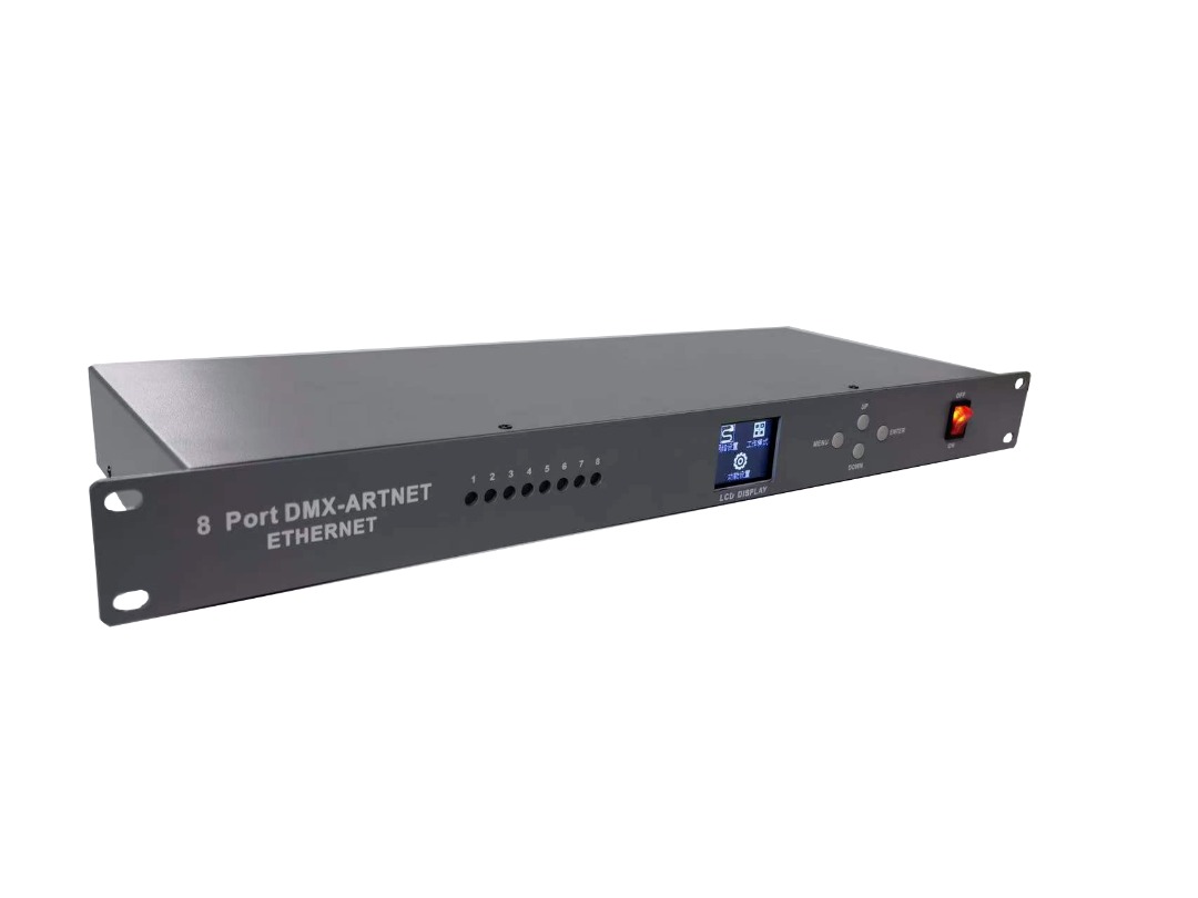 Преобразователь сигналов ArtNET-DMX, 8 портов (8 портов DMX итого 4096 каналов). Двунаправленный конвертор ArtNet/sACN/DMX-512. Все порты DMX имеют гальваническую развязку.