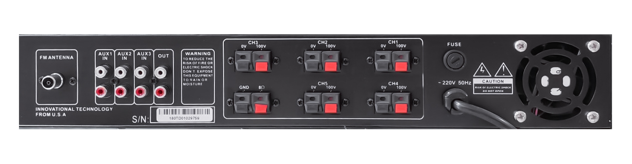 Арт.: Я0015757MVT BA5120 - Микшер-усилитель трансляционный 5-зонный, независимые регуляторы громкости в каждой зоне. Мощность общая 120Вт. Встроенный плеер USB/Bluetoth, FM-радио. Входы: USB, 3 стерео AUX (RCA), 2 микрофонных (Стерео Jack), Выход AUX (2xRCA)