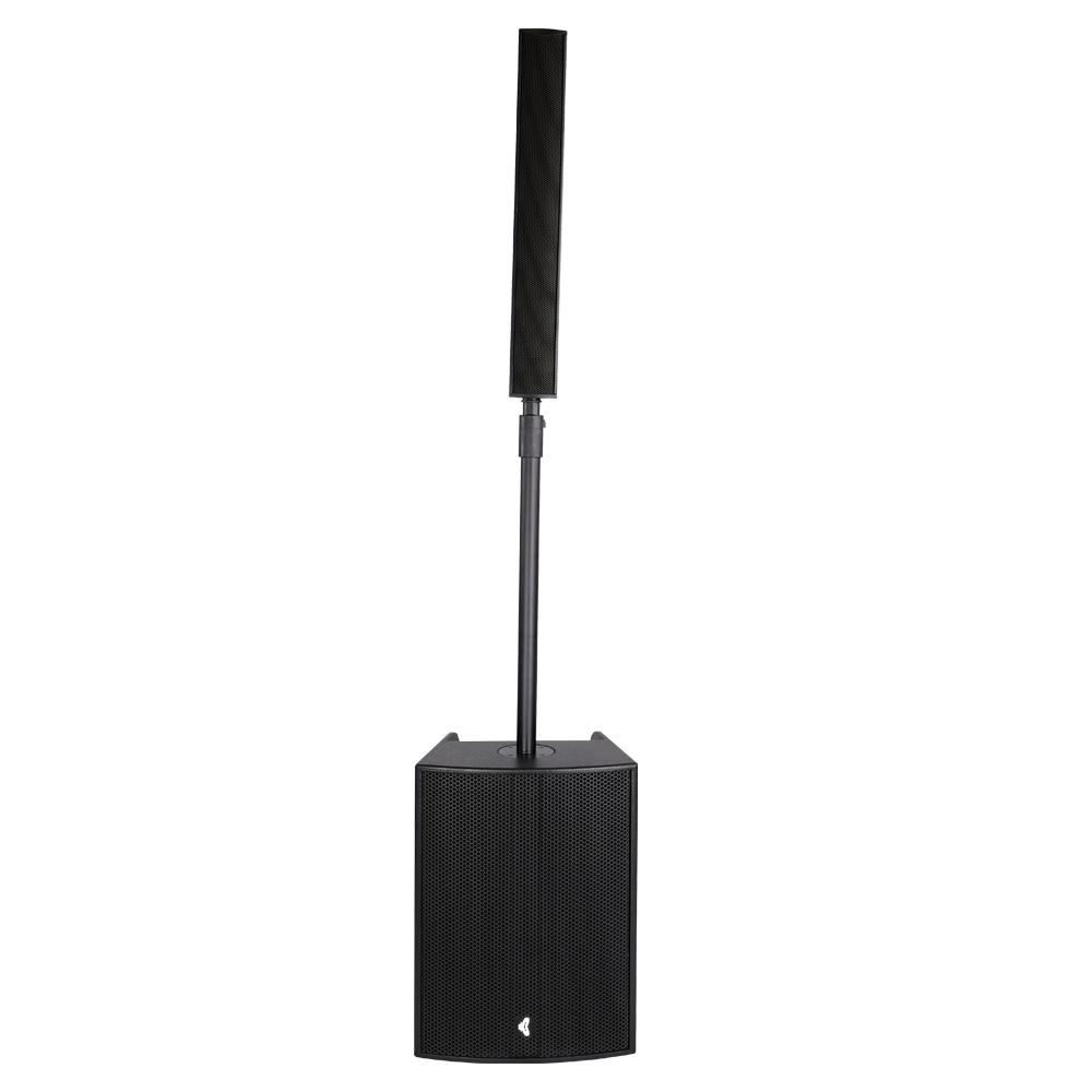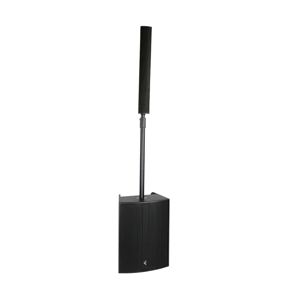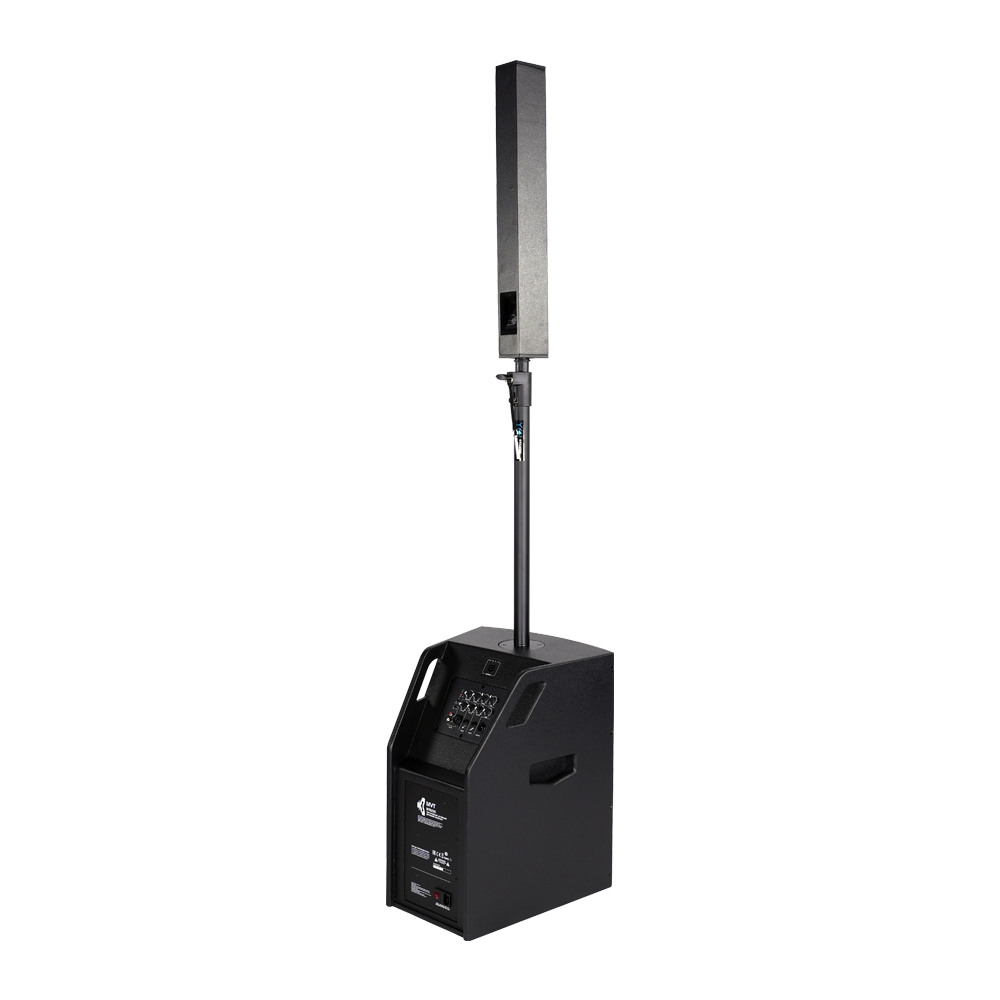 Портативный активный звуковой комплект с 9 динамиками: сабвуфер, звуковая колонна, встроенный 3-канальный микшер, EQ, встроенный DSP (echo, limiter, gate). 800 Вт, 117 дБ, 1х15" / 6х2.75" / 2х1", 60Гц-18кГц, 438х1305х467 мм, 23,6 кг.