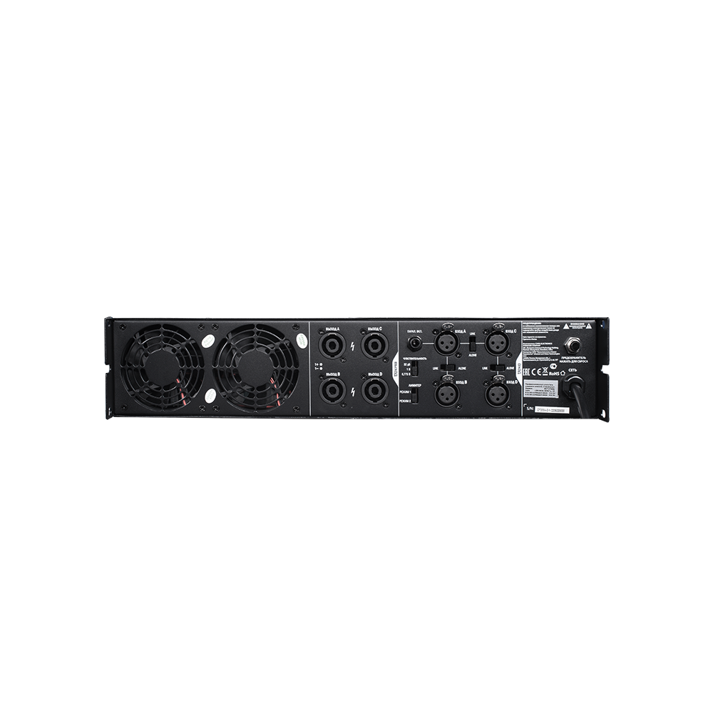 Арт.: Я0015636MVT DT2004 - Усилитель мощности класса D, 4-канальный. Эффективная система охлаждения; стабилизированный (трансформаторный) блок питания повышает надежность работы при перепадах напряжения. Входы: 4 балансных XLR; выходы: 2 разъёма Speakon NL4, 1 разъем TRS для каскадирования; световые индикаторы и регуляторы громкости на передней панели. Мощность: 4х550Вт@8Ω, 4x850Вт@4Ω, 20Гц–20кГц, демпинг-фактор >500 @ 8Ω/100Гц, уровень S/N > 102дБ, а, высота 2U, 482×89×380мм, 15,5 кг.¶