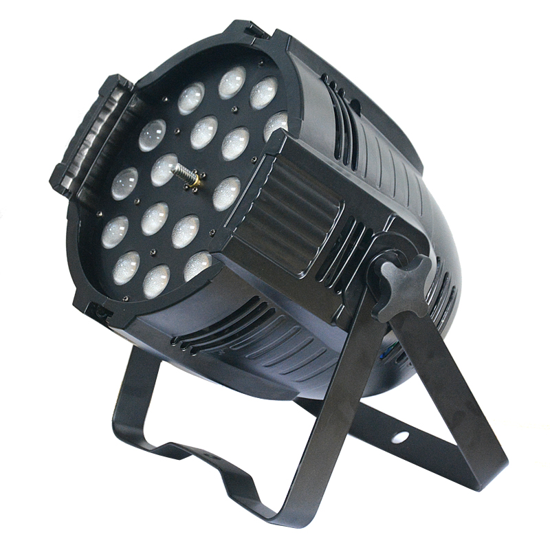 18 SMD светодиодов мощностью 15 Ватт каждый. Тип цветосмешения каждого светодиода RGBWA + UV ( 6в1 красный, зеленый, синий, белый, янтарный (амбер), ультрафиолет), более 16 миллионов оттенков цветов. Диммер 0-100%, стрбоскоп 1-25 вспышек в секунду. Угол раскрытия светового луча 15°-60°. Режимы управления: DMX512 (12 каналов), звуковая активация , авто режим, Master/Slave.