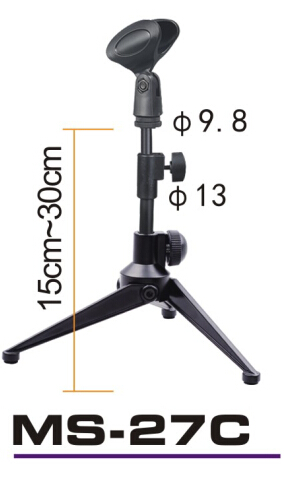 Арт.: Я0015641MVT MS-27C - Микрофонная стойка металлическая, настольная, складная, телескопическая, высота 15-30 см с держателем микрофона из жесткой резины, цвет - черный.