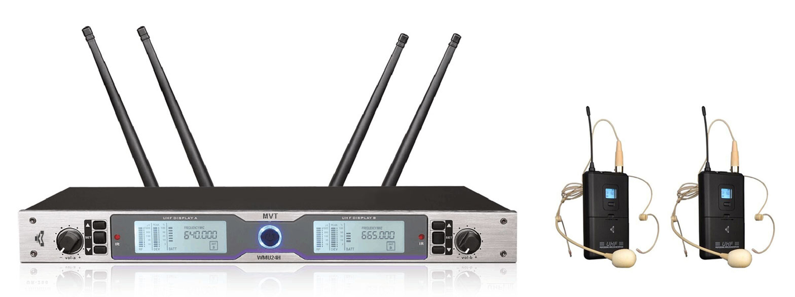 Арт.: Я0015797MVT WMU24H - 2-х канальная радиосистема с 2-мя головными гарнитурами с передатчиками диапазона UHF (640-690 МГц) с системой фазовой автоподстройки частоты