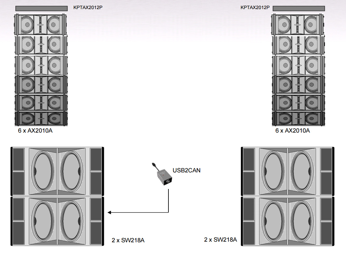 12 x AX2010A - активный элемент линейного массива, 2x10", 2x1000 Вт, max SPL 138 дБ