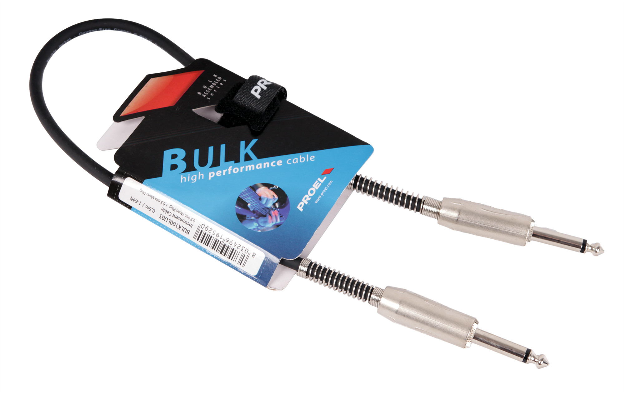 637 ₽PROEL BULK100LU05 - Профессиональный инструментальный кабель, 6,3 мм моно джек - 6,3 мм моно джек, длина 0,5 м, цвет чёрный
