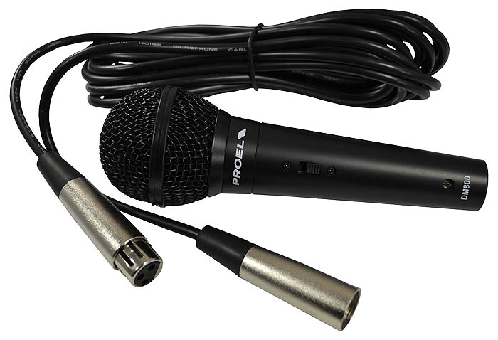 По запросуPROEL DM800 - Микрофон динамический кардиоидный для вокала. Регулятор on/off, 60Гц - 14кГц, цвет черный, длина 180 мм, ∅ 45 мм, вес 260 г, в комплекте кабель 5 м.