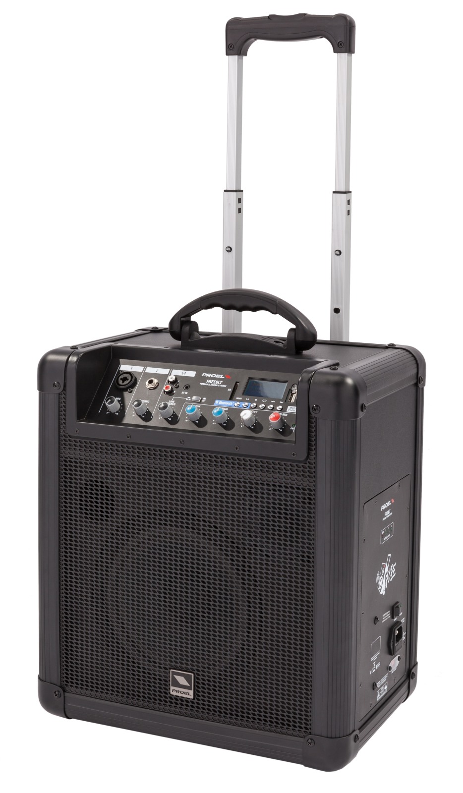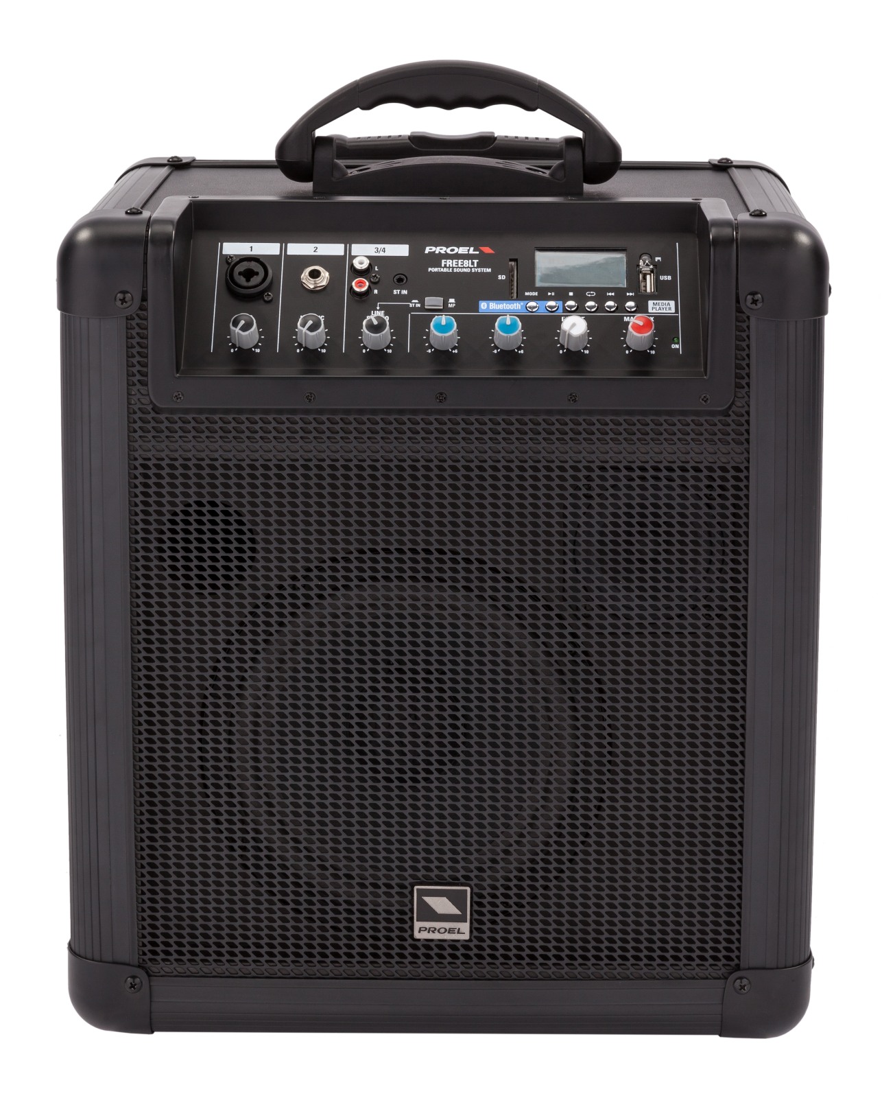 По запросуPROEL FREE8LT - портативная активная акустическая система, НЧ 8", ВЧ 3", усилитель 20 Вт, 65 Гц-15 кГц, встроенный MP3-плеер с USB, SD-слот, Bluetooth, LCD дисплей, удаленное управление, входы 2xMIC/LINE, 1xSTEREO LINE, работа на батарейках (1x12 В/5 А) 2-3 часа, питание 115 В или 230 В ~ 50/60 Гц, вес 12 кг, размеры (ШxВxГ) 465x510x375 мм.