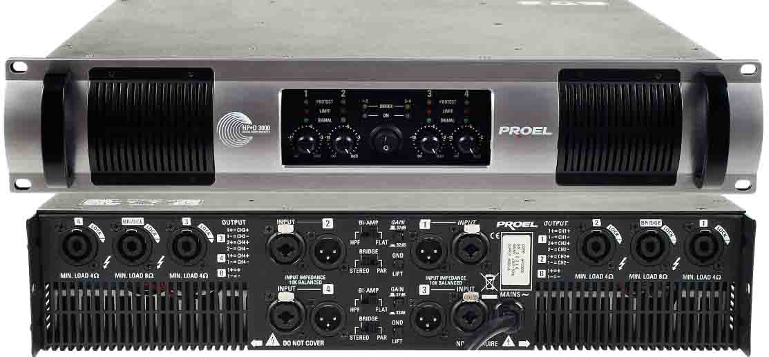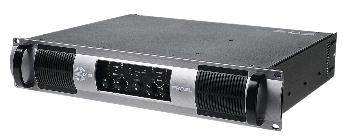 По запросуPROEL HPD2000 — усилитель мощности 4-канальный, несколько степеней защиты, в т.ч. от перегрева, короткого замыкания и лимитер для предотвращения кратковременных перегрузок. 100Гц 24дБ/Oct BI-AMP кроссовер. Предусмотрены фильтры: FLAT/BI-AMP/HPF, режимы работы: STEREO/BRIDGE/PARALLEL. Импульсный блок питания.
