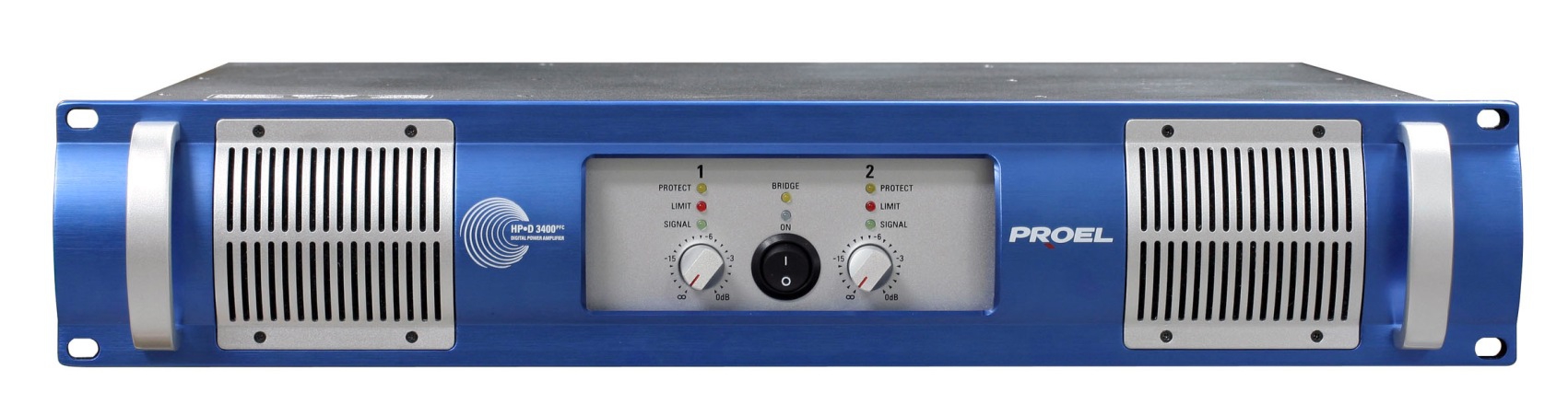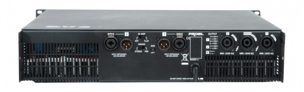 Арт.: Я0010906PROEL HPD3400PFC - 2-канальный усилитель с корректром фактора мощности, 3400Вт (мост, 8 Ом), 2х1700Вт (4 Ом), 2х1100Вт (8 Ом). 10 Гц—20 кГц, 2U, 483x89x383 мм, вес 11 кг.