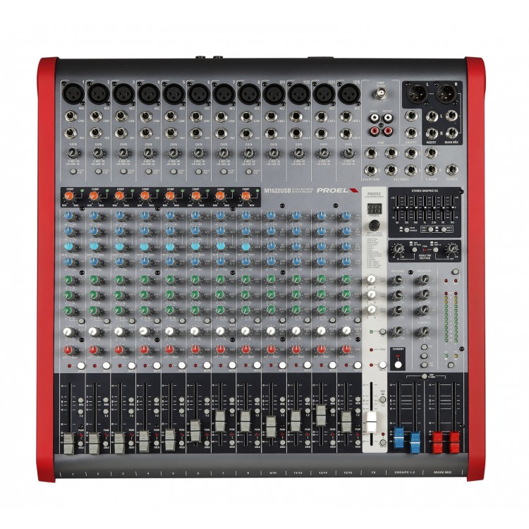 PROEL M1622USB - Микшер 16 каналов (12 микрофонных + 8 линейных +4 стерео), DSP процессор, USB, 7-и
