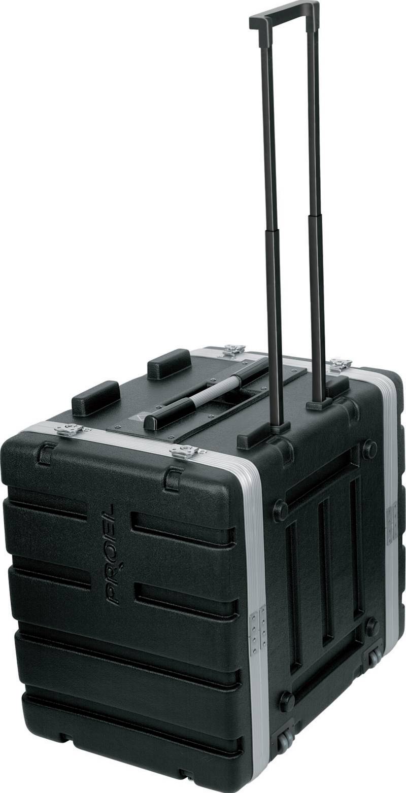 Арт.: Я0006356PROEL MFPRO 10UW- Пластиковый рэковый кейс 10U: две съемные крышки, телескопическая ручка, на колесах, замки "бабочка", вес:8,2кг., цвет: черный.