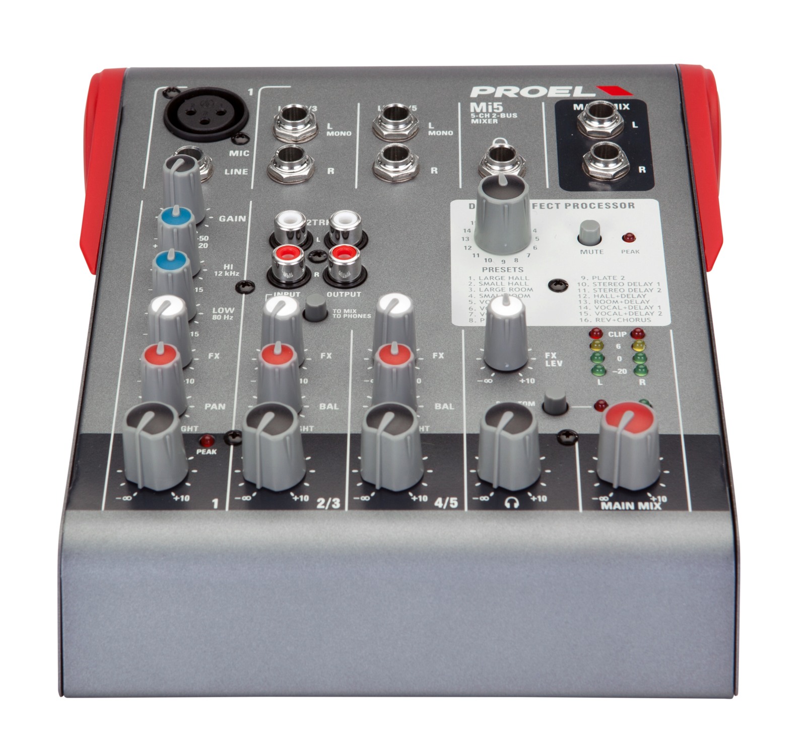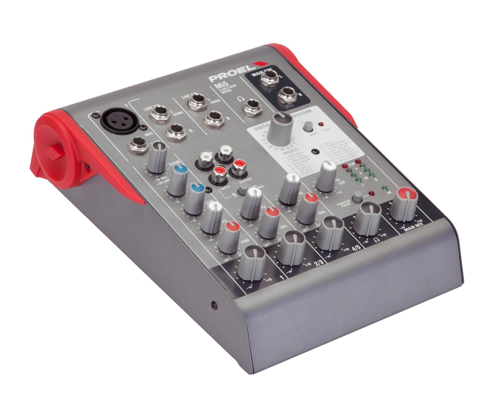 PROEL MI5 - Ультра-компактный микшер 5 каналов, 2 шины, потребляемая мощность 17 Вт, процессор эффек