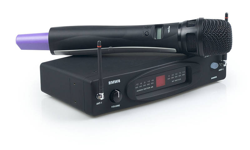По запросуPROEL RMW8M — Беспроводная двухантенная микрофонная радиосистема с динамическим кардиоидным ручным микрофоном, имеет все преимущества PLL систем диапазона UHF (798—822 МГц), 100 предустановленных частот.