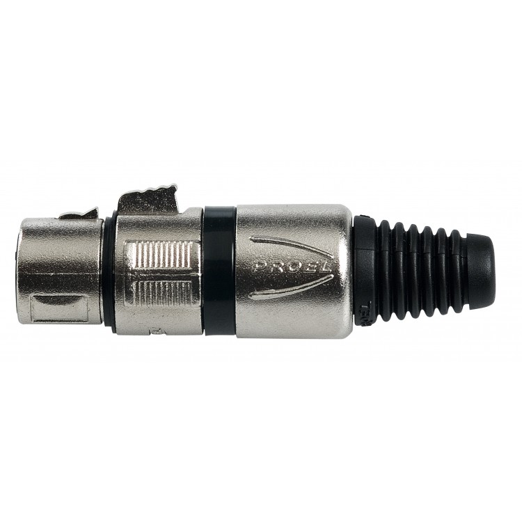Арт.: Я0002116PROEL XLR3FVPROBK - Профессиональный кабельный 3-контактный разъём XLR мама, светлый металл, металлический зажим для кабеля, цвет маркировочного кольца: чёрный
