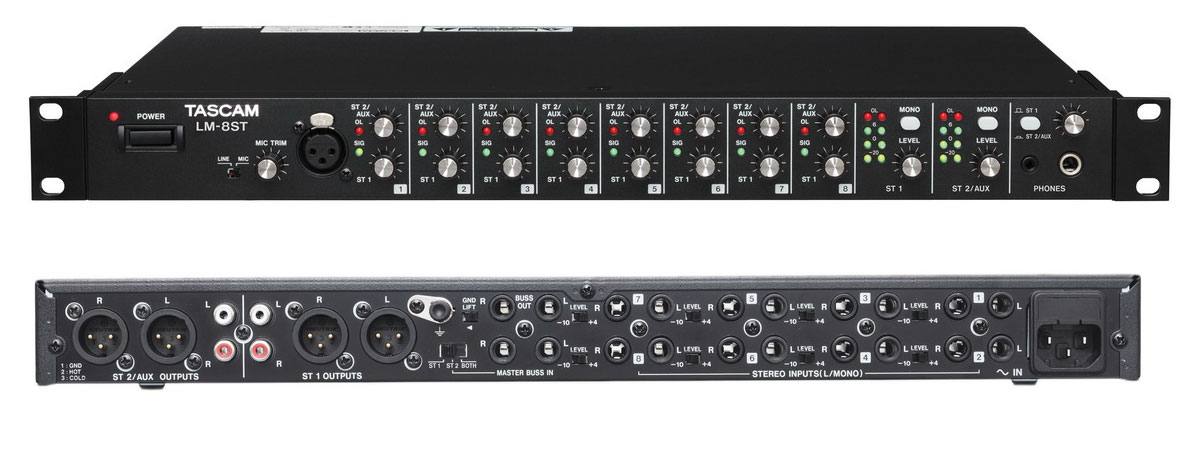 Арт.: Я0009778Tascam LM-8ST - Линейный микшер, 8 стереовходов TRS, 1 микр. вход XLR, 2+2 выхода (XLR+RCA), 4 BUS