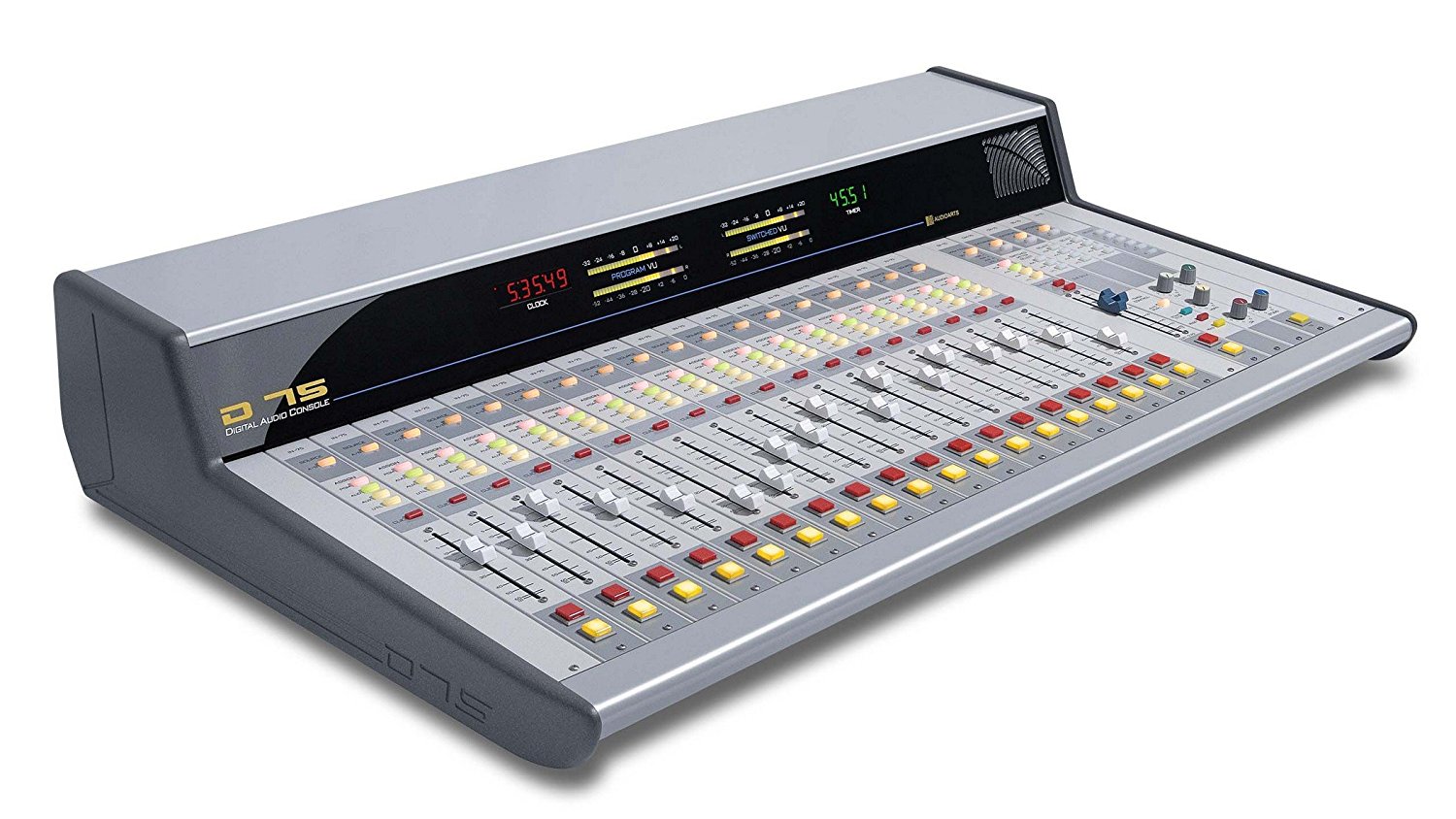 Стандартная большая рама пульта D-75 имеет 4 микрофонных предварительных усилителя, 18 модулей стереофонического линейного входа (может использоваться более короткая модель с 12-входными модулями), модули мониторов аппаратной и студии, выходной модуль, внешний источник питания, две пары светодиодных индикаторов уровня, цифровые часы и таймер, гнездо подключения наушников и встроенный динамик (показанные на фото двойной телефонный модуль и модуль выбора линии являются опциями).