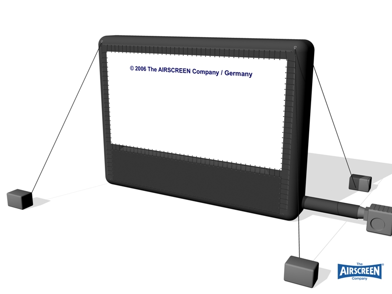 - Cистема включает: надувной каркас, проекционный экран, натяжные элементы для экрана, настраиваемые нейлоновые страховочные привязи и продувочный насос