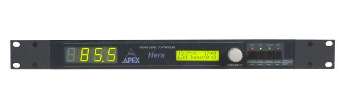 Процессор, который регистрирует работу звуковой системы, в комбинации со звуковым контроллером Argos MKII или как автономная единица. Процессор Hera регистрирует всю необходимую информацию: измеряет давление на микрофонном входе (RMS dB), вычисляет средний уровень за 15 минут, сохраняет эту информацию (за каждые 15 минут) в течение 15 дней в "Списке измерения уровня", управляет пороговым усилением контроллера Argos, обнаруживает ошибки.