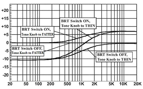 - Переключатель BRIGHT позволяет акцентировать «яркость» звучания