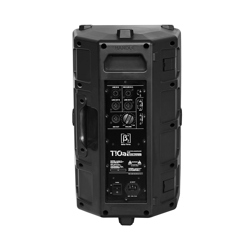 Арт.: Я0015912Beta Three T10a - активная 2-полосная акустическая система, 450Вт / 1800 Вт (RMS/Peak) НЧ 10", ВЧ 1,4", 55Гц-20кГц, 118/124дБ, 90°х60°, усилитель класса D, двойной "стакан" для установки на стойку Ø35мм, точки подвеса, встроенная система защиты, пластиковый корпус, 306x516x238 мм, 13.8 кг