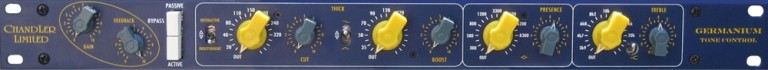По запросу Серия новейших устройств Chandler Limited продолжается регулятором тембра Germanium Tone Control EQ. В регуляторе тембра используются активные и пассивные эквалайзеры в комбинации с усилителем Germanium, разработанным Chandler Limited для Germanium Pre, и включает также гибкие регуляторы Feedback и Drive. Во всех диапазонах используются индуктивности для получения как можно более ровной и плоской тональной характеристики.