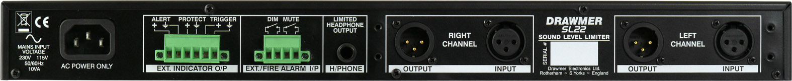 Drawmer SL22 исключает вероятность несанкционированной подачи на акустические системы сигнала с чрезмерным уровнем, что может повредить не только динамики, но и электронику усилителя, тем самым защищая дорогостоящее акустическое оборудование.