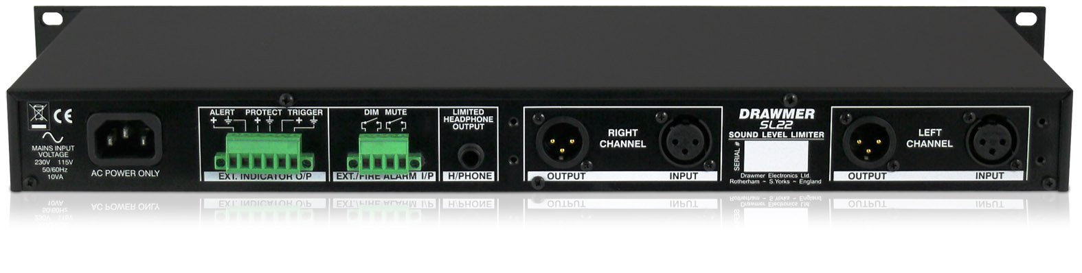Точная калибровка и точный контроль уровня звука делает лимитер Drawmer SL22 незаменимым для клубов, театров, баров, школ, концертных и спортивных залов и т.д. для соблюдения требований по уровню шума, установленных местными властями. Drawmer SL22 деликатно контролирует уровень звукового давления. При этом прибор максимально надежен, что исключает возможность непреднамеренных повреждений подключенных к нему приборов. Drawmer SL22 обладает дополнительными функциями, включая удаленное плавное регулирование уровня звука и подключение к пожарной системе оповещения, что помогает автоматически уменьшать уровень звука всех акустических систем при тревоге, позволяя пожарной сигнализации или системам оповещения звучать более громко на фоне порталов.