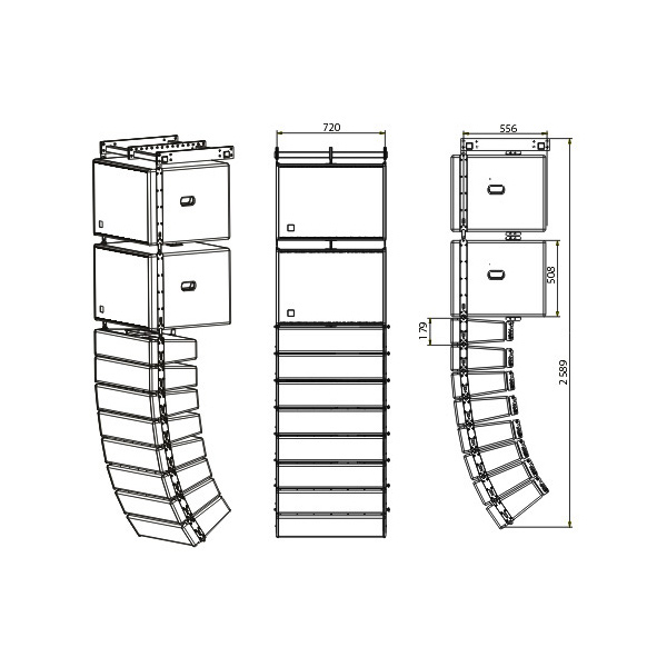 Арт.: Я0011448MS-MAX R6/R12a - компактный активный линейный массив, 1460 Вт, SPL/max R6: 116/122 дБ, R12a: 122/128 дБ, 45Гц—20кГц, 120°x30°, R6 (1 шт): 174x363x730 мм, R12: 508x630x730 мм, вес системы в сборе: 122.5 кг, система включает (разъемы 2хNL4 на каждом элементе): 4 линейных элемента R6 (НЧ: 2х6.5", СЧ: 6.5", ленточный ВЧ-твитер 1") + сабвуфер R12a (2х12") + рама для подвеса