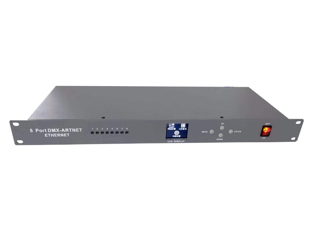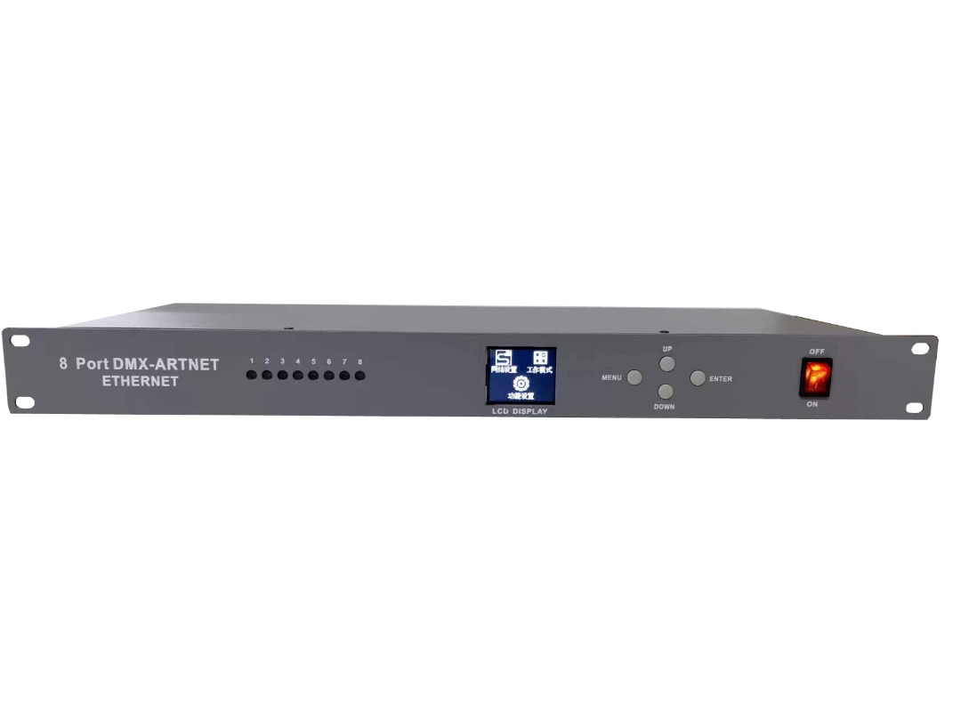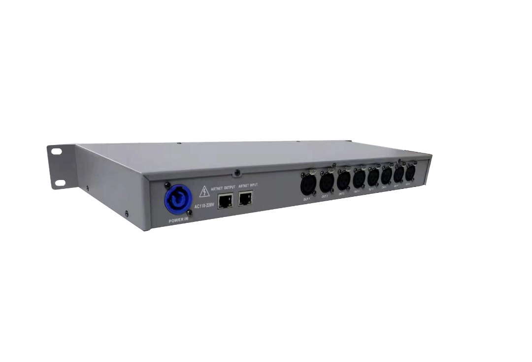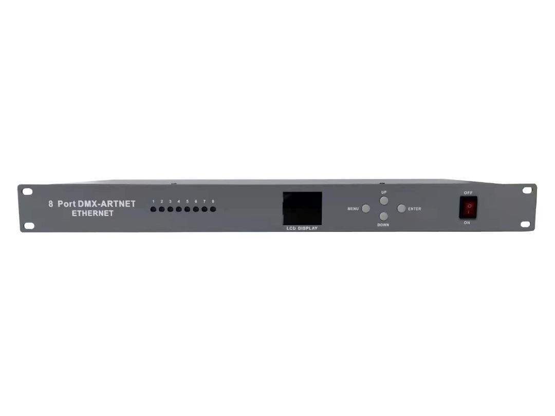 Преобразователь сигналов ArtNET-DMX, 8 портов (8 портов DMX итого 4096 каналов). Двунаправленный конвертор ArtNet/sACN/DMX-512. Все порты DMX имеют гальваническую развязку.