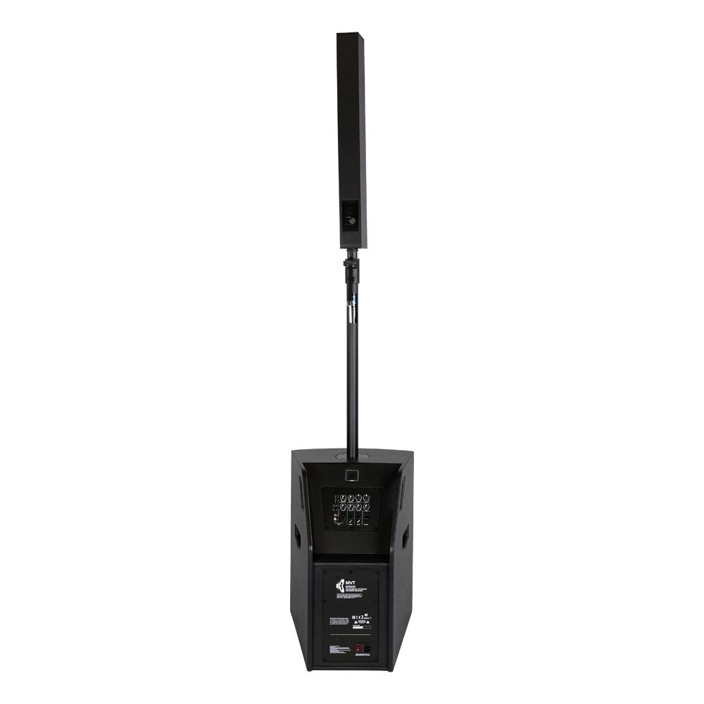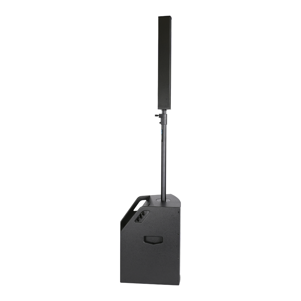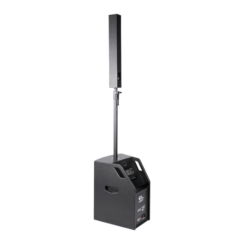 Портативный активный звуковой комплект с 9 динамиками: сабвуфер, звуковая колонна, встроенный 3-канальный микшер, EQ, встроенный DSP (echo, limiter, gate). 800 Вт, 117 дБ, 1х15" / 6х2.75" / 2х1", 60Гц-18кГц, 438х1305х467 мм, 23,6 кг.