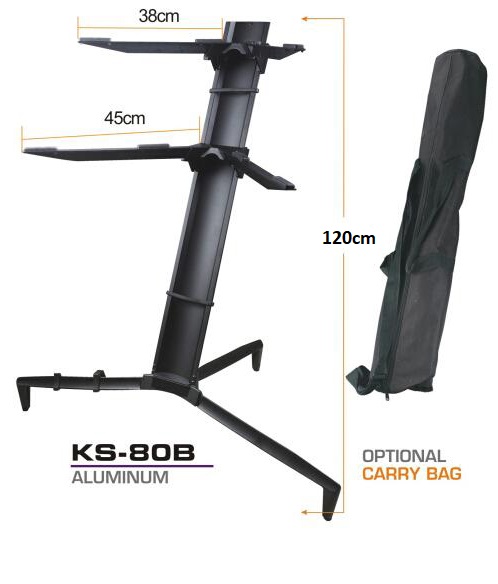 MVT KS-80B (1.2M) - Стойка-колонна для клавишных инструментов, 2 яруса, черная, алюминиевая, вес 5,7