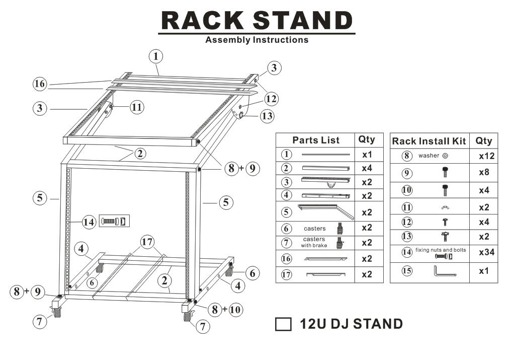 Арт.: Я0015826MVT MX-2 - Стальная рэковая стойка 19" (сборная конструкция) 12U вертикальный монтаж + 9U -повортотный, глубина 580 мм, высота 1000мм, вес 11кг, порошковая покраска, цвет черный. 34 комплекта крепления юнитов для рэковых стоек: 34 винта (M6x10 мм), 34 шайбы, 34 гайки-клипсы М6