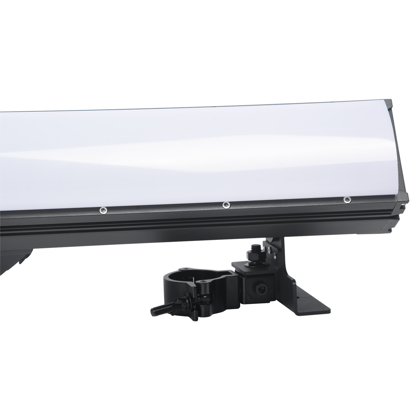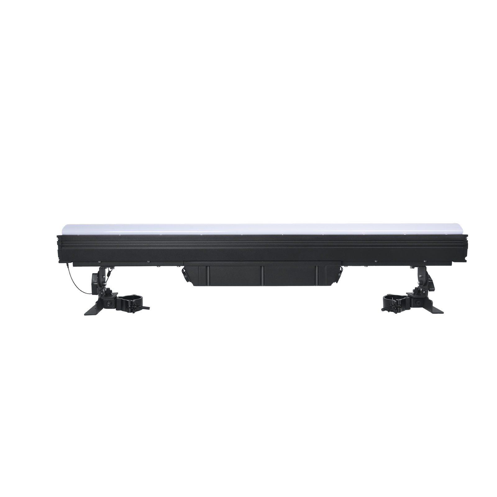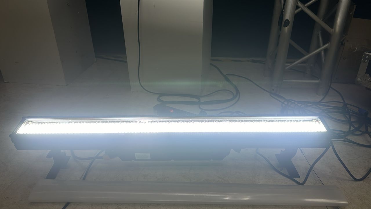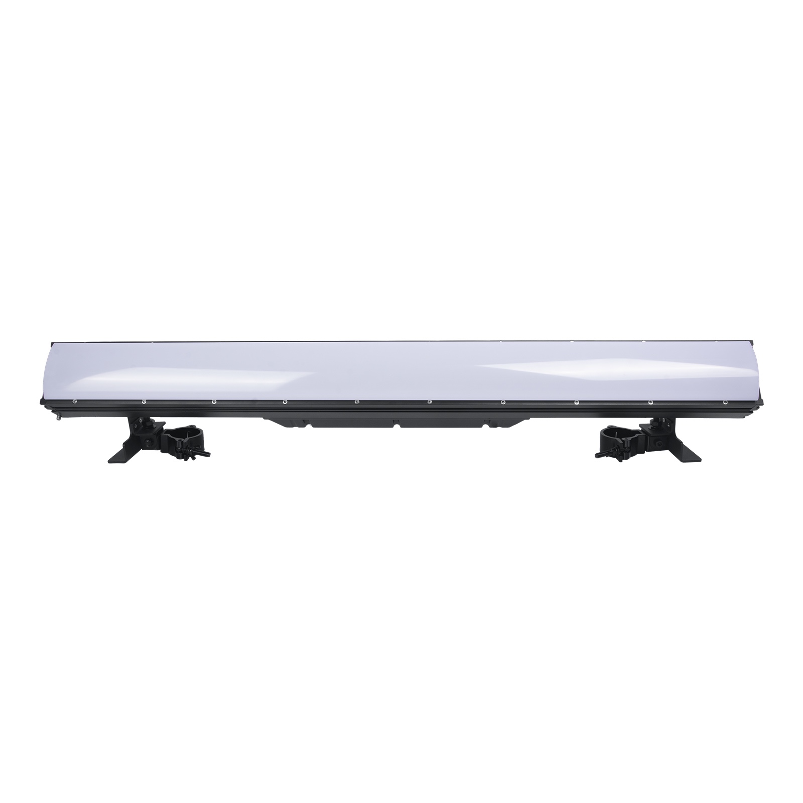 Линейный светодиодный стробоскоп 288 шт. - 3Вт светодиода "холодный белый" + 864 - 0,5Вт светодиода RGB. В комплекте со складными струбцинами (позволяют ставить прибор на пол, закреплять на ферму и убирать в транспортировочный кейс без демонтажа струбцин), страховочным тросиком и сигнальным кабелем DMX, Всепогодная версия IP65. Управление DMX/RDM