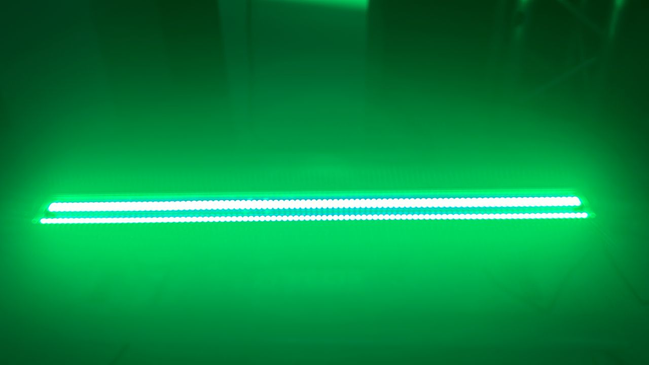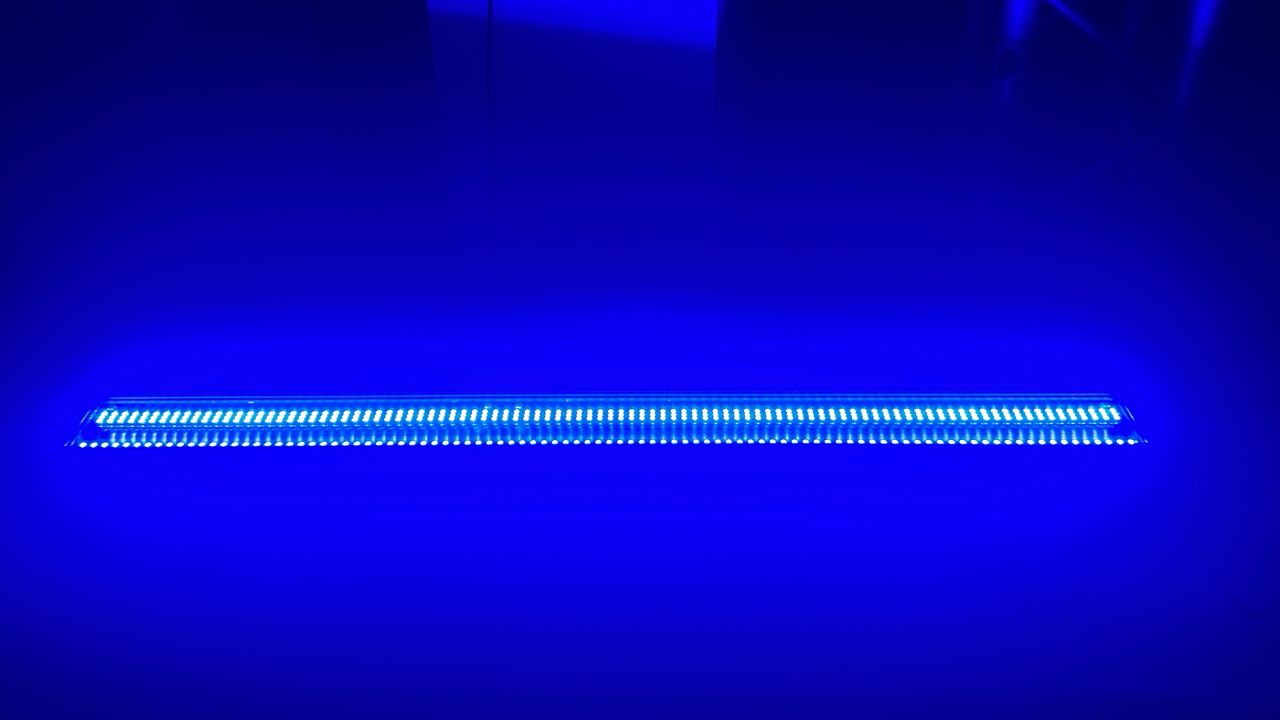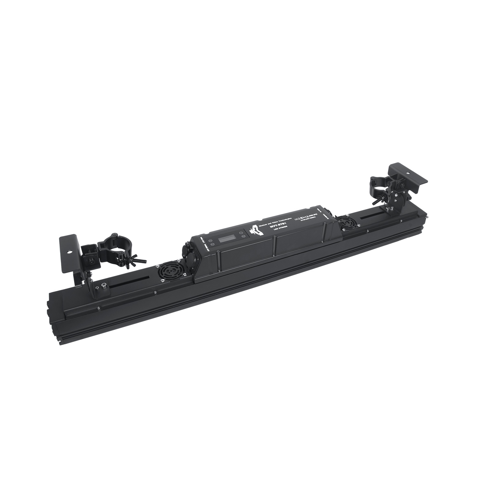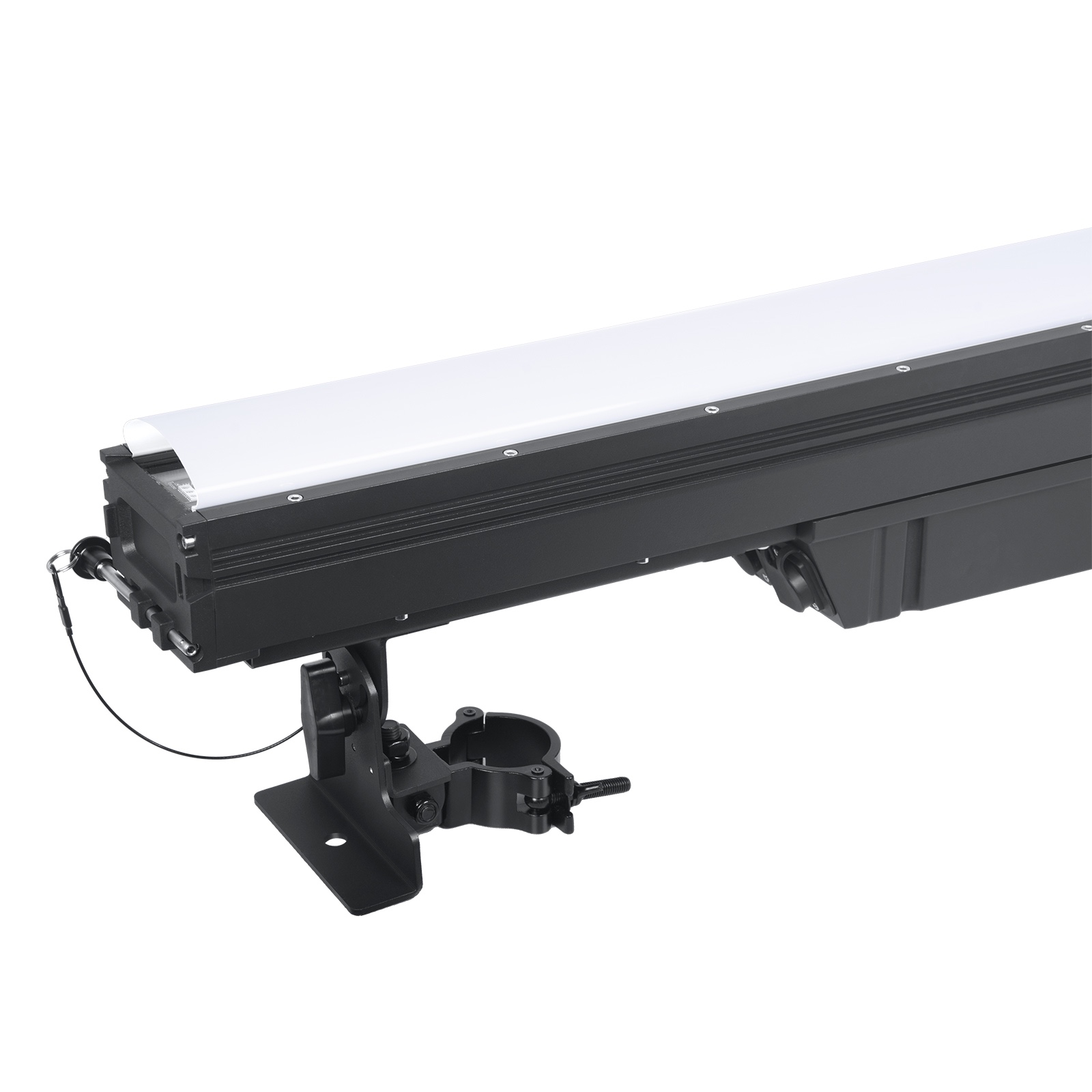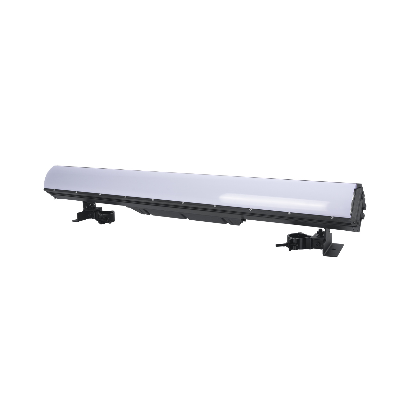 Линейный светодиодный стробоскоп 288 шт. - 3Вт светодиода "холодный белый" + 864 - 0,5Вт светодиода RGB. В комплекте со складными струбцинами (позволяют ставить прибор на пол, закреплять на ферму и убирать в транспортировочный кейс без демонтажа струбцин), страховочным тросиком и сигнальным кабелем DMX, Всепогодная версия IP65. Управление DMX/RDM