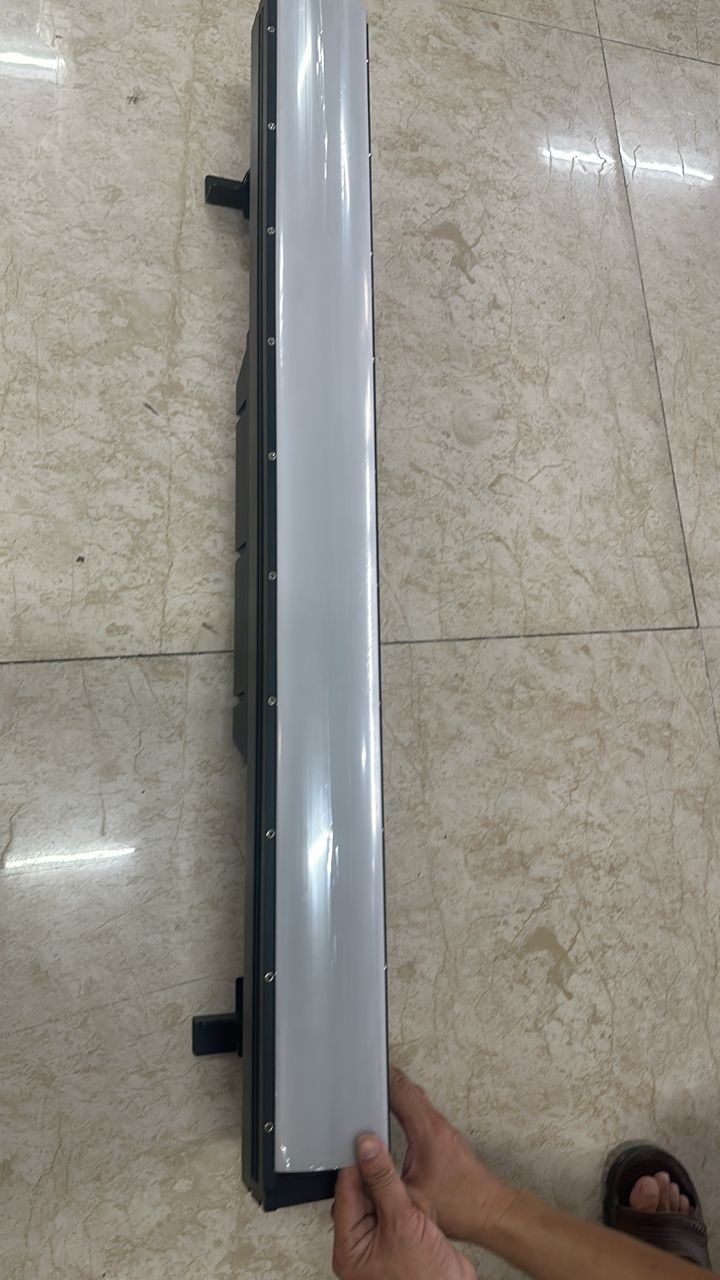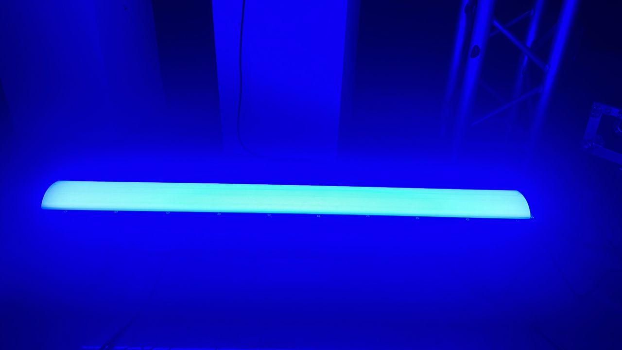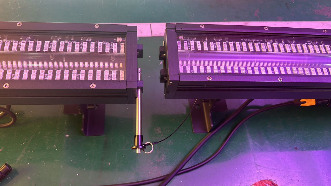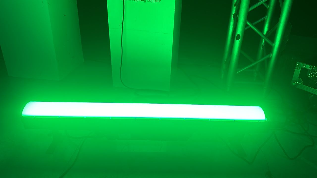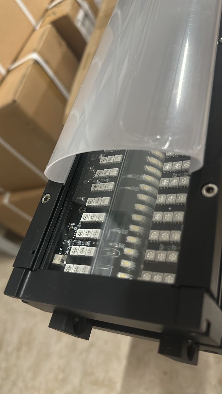 Линейный светодиодный стробоскоп 288 шт. - 3Вт светодиода "холодный белый" + 864 - 0,5Вт светодиода RGB. В комплекте со складными струбцинами (позволяют ставить прибор на пол, закреплять на ферму и убирать в транспортировочный кейс без демонтажа струбцин), страховочным тросиком и сигнальным кабелем DMX, Всепогодная версия IP65. Управление DMX/RDM