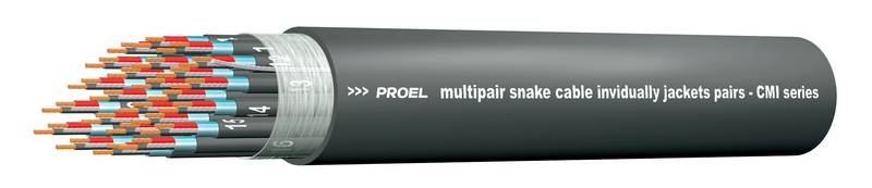 По запросуPROEL серия CMI – экранированные многопарные кабели (проводники свиты попарно). Изоляция проводников в паре, выполненная из сшитого полиэтилена, имеет индивидуальную цветовую маркировку (красный и черный), что обеспечивает простую идентификацию при монтаже. Каждая пара кабеля имеет индивидуальный экран из алюминиевой ленты, свой дренажный провод, а также свою оболочку из ПВХ, промаркированную с двух сторон. Такая конструкция позволяет практически полностью исключить взаимное влияние пар при передаче сигналов (перекрестные помехи). Внешняя оболочка выполнена из ПВХ, сохраняющего гибкость даже при высоких температурах, что очень важно при больших изгибах кабельных трасс.
