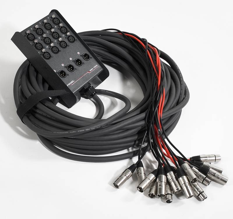 По запросуPROEL EBN1204 - мультикор, 16 каналов: входы – 12 XLR, выходы – 4 XLR, длина кабеля 25 метров.