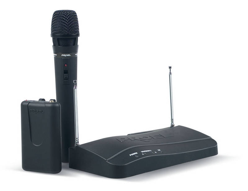 По запросуPROEL RM200KIT — Радиосистема разного приема VHF, работает по принципу "plug-and-play", имеет кварцевый стабилизатор частоты, две телескопические антенны, выход XLR, регулируемую схему бесшумной настройки и семь доступных частот, которые можно использовать одновременно. Состоит из приемника, микрофонного передатчика, портативного передетчика, петличного микрофона LSM-1 и головного микрофона HDM-1.