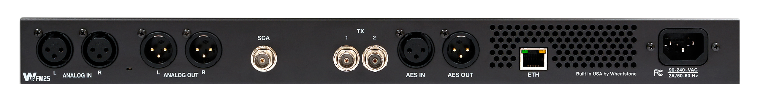 Радиовещательный процессор FM-25 полностью поддерживает WheatNet-IP Intelligent Network. Он имеет два аналоговых композитных выхода (BNC), два SCA входа, симметричные аналоговые L/R выходы, а также цифровой выход AES, который может переключаться между дискретным L/R и baseband192. Процессор FM-25 оснащен автоматически синхронизирующимися отказоустойчивыми входами, сигнал можно направить посредством аналогового или AES входов, а также используя сеть WheatNet-IP.